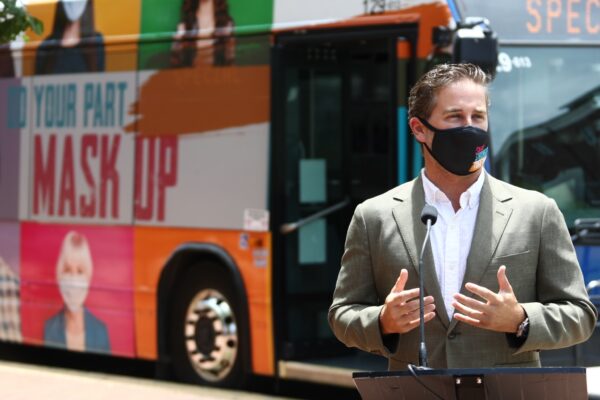 Comparte en: El alcalde del condado de Orange Jerry L. Demings, junto con Lynx, Orlando Economic Partnership (The Partnership) y Visit Orlando, revelaron las pinturas que cubren un autobús LYNX de 60 pies hoy en el Edificio de Administración del Condado de Orange. El autobús está envuelto en imágenes que promueven la campaña Safer, Stronger, Together … Sigue leyendo Colorido autobús para crear conciencia durante la pandemia